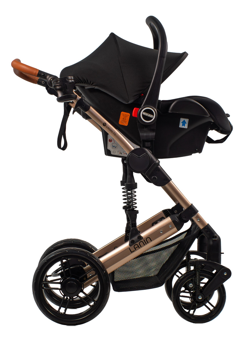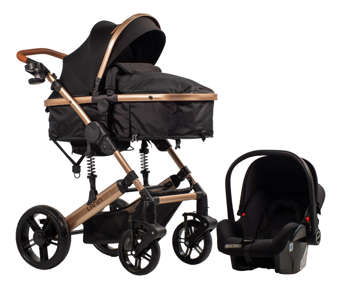 Cochecito de paseo travel system Mega Baby 3 en 1 Lanin Travel System negro con chasis color dorado